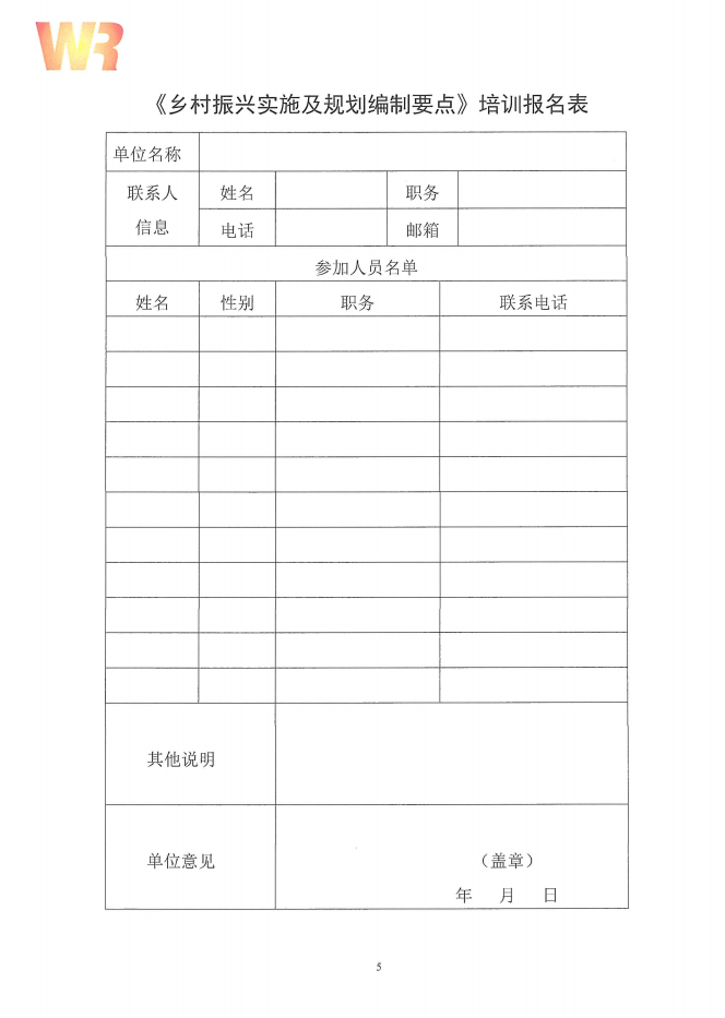 《乡村振兴实施及规划编制要点》培训报名表.docx