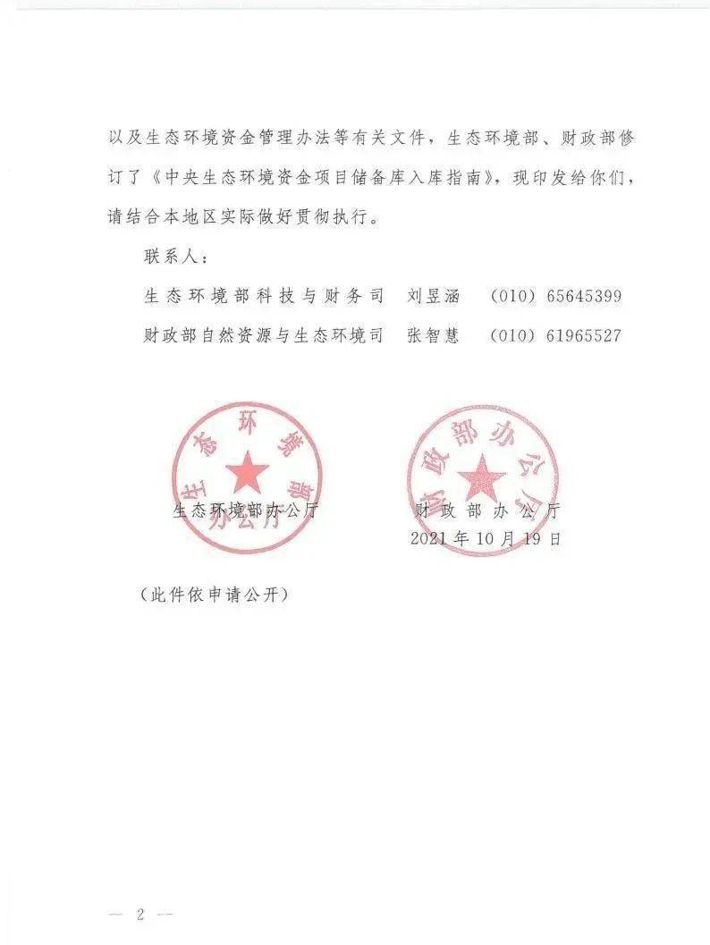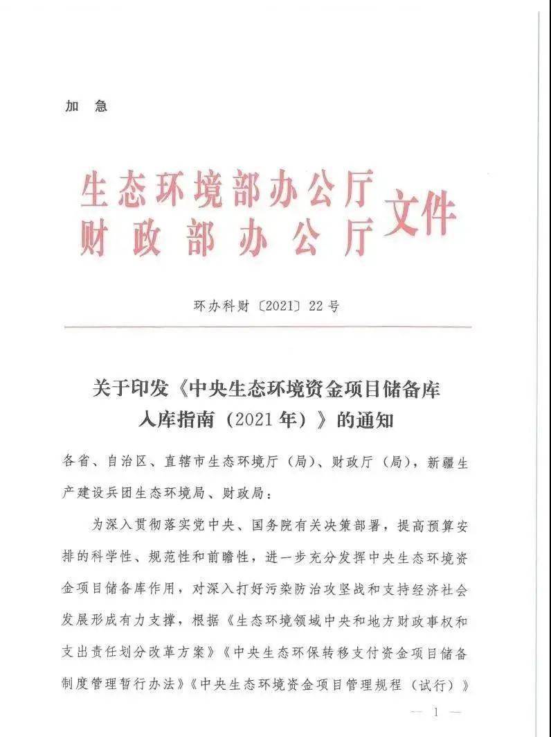 为深入贯彻落实党中央、国务院有关决策部署,提高预算安排的科学性、规范性和前瞻性,进一步充分发挥中央生态环境资金项目储备库作用,对深入打好污染防治攻坚战和支持经济社会发展形成有力支撑,生态环境部办公厅、财政部办公厅修订了 《中央生态环境资金项目储备库入库指南(2021年)》。