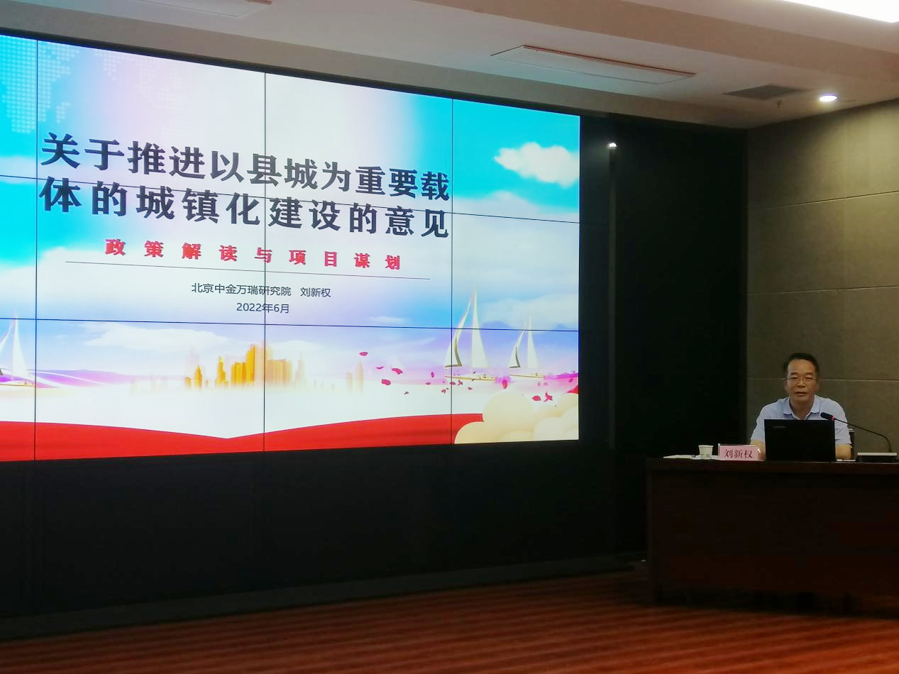 2022年6月8日,受佛坪县发改局邀请,北京中金万瑞工程咨询有限公司总经济师、万瑞研究院院长刘新权为该县进行了《以县城建设为重要载体的城镇化建设实施意见》的培训,佛坪县县级领导,各部门、各镇办主要负责人以及业务干部等100余人参加了培训。